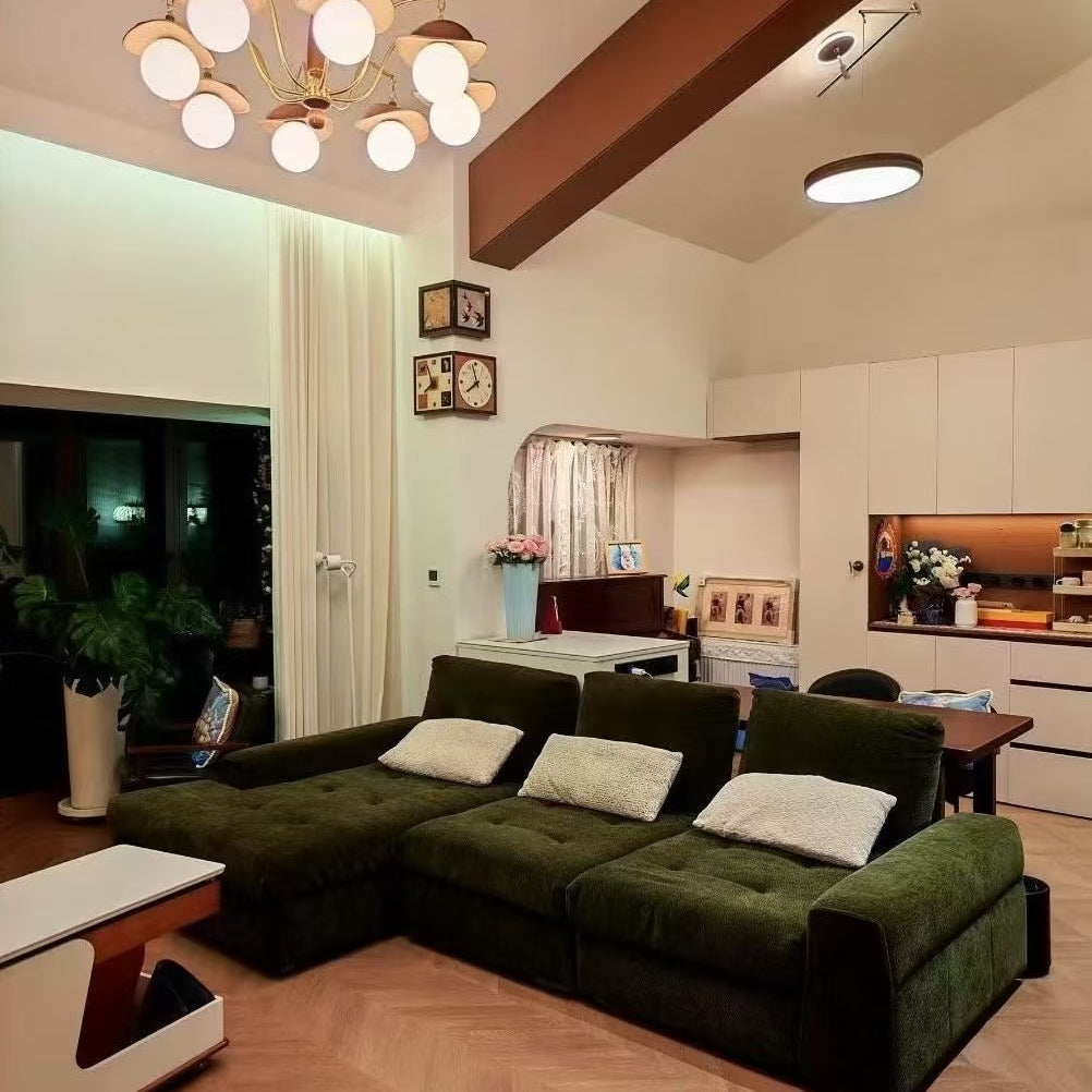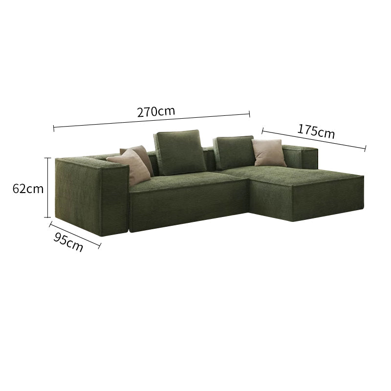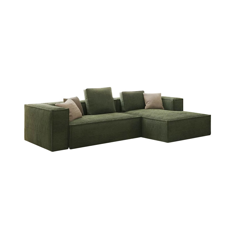 Green Corduroy “Tofu Block” Corner Sectional Sofa – Modern Modular Lounge Sofa